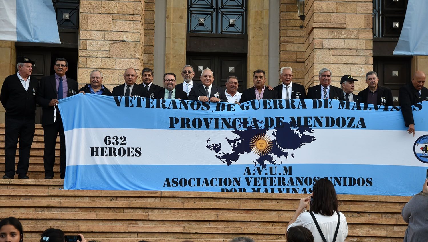 Cientos de mendocinos participaron hoy en el homenaje a los caídos en Malvinas que se realizó en la tarde del lunes frente a la Casa de Gobierno. La vicegobernadora Hebe Casado y ministros del Ejecutivo provincial estuvieron presentes en el acto.