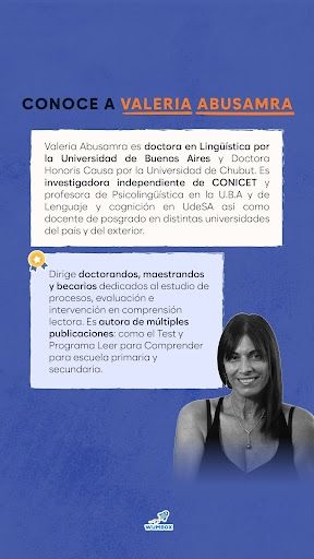 En el marco del Congreso Internacional de Alfabetización, organizado por Wumbox, entrevistamos a Valeria Abusamra, y hablará sobre comprensión y evaluación. es doctora en lingüística, investigadora del Conicet y profesora universitaria en la Universidad de Buenos Aires y en Flacso. Su investigación se enfoca en los procesos implicados en lectura, escritura y comprensión lectora. Es autora de varios libros y manuales, como Neurociencias y educación por el que ganó la mención de honor al mejor libro de educación en 2016.