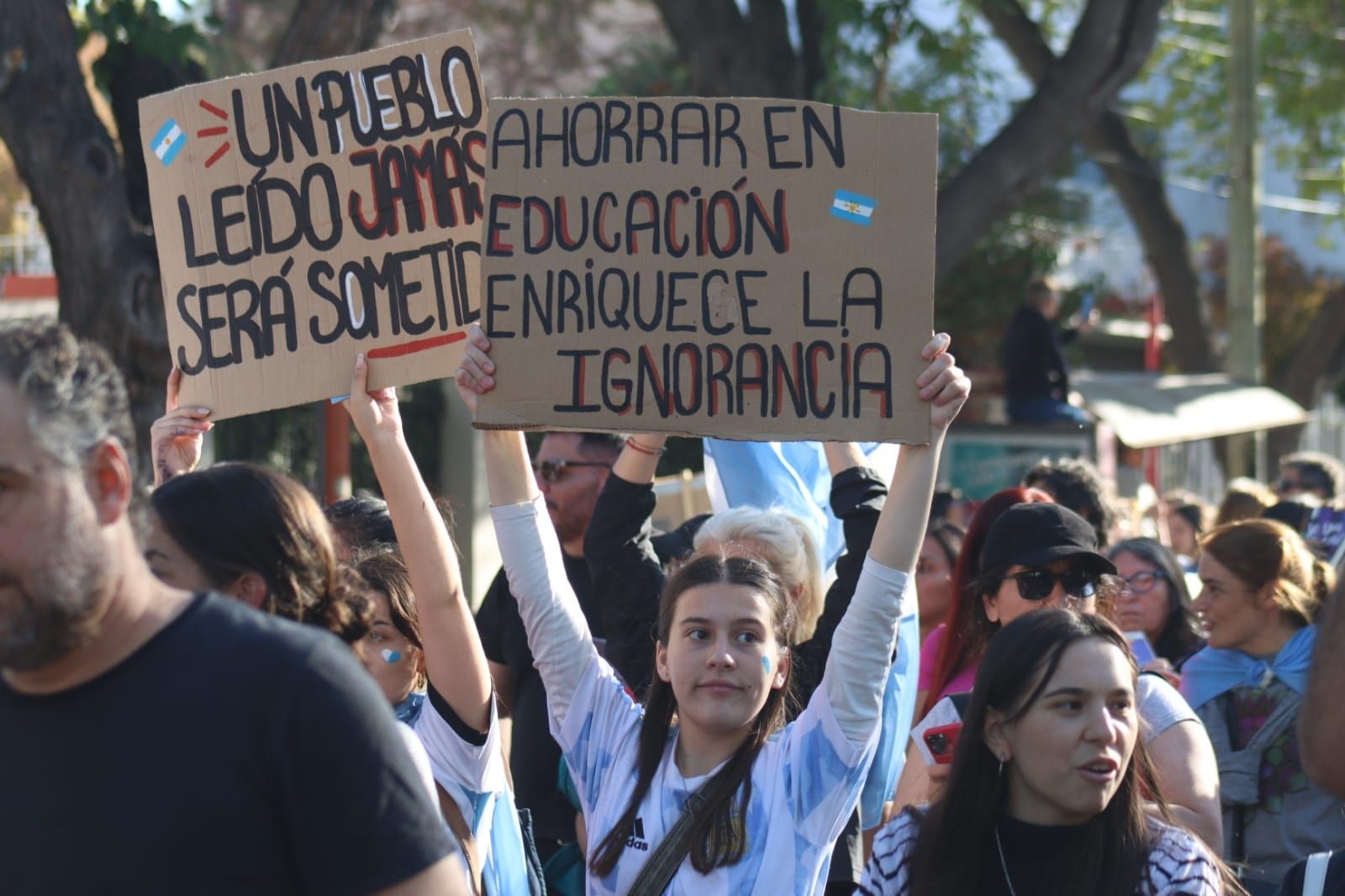 Más de 70 casas de estudio se manifiestan en distintos puntos del país. En la provincia, se están desarrollando dos manifestaciones, una en Ciudad y la otra en San Rafael. Mirá las imágenes.