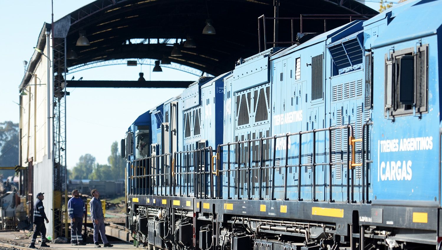 Allí funcionan los talleres de vagones del tren de carga. Vuelan chispas por todos lados. Una mujer pinta un vagón, otros rectifican unas ruedas que pesan toneladas. Si la decadencia del tren de pasajeros es una muestra de decadencia, el trabajo en el tren de cargas y el taller es la de la resistencia. “El tren es una pasión”; dice Mariano, con la mano cerrada y acompañado de dos de sus colegas ferroviarios: Luis Guillermo y Jorge. Los tres calzan con orgullo el uniforme azul de Ferrocarriles Argentinos.