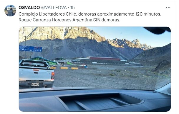 Durante este viernes se registró intensa actividad en la ruta que une Argentina con Chile, precisamente en el Paso Internacional Cristo Redentor. Las demoras en el Complejo Los Libertadores son de dos horas aproximadamente y se mantienen las largas filas de autos que esperan para realizar los trámites migratorios y aduaneros de ingreso al vecino país.