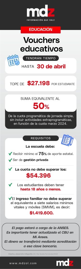 Según lo informado por la Secretaría de Educación, los beneficiarios del programa recibirán el 50% del valor del arancel de jornada simple, sin incluir actividades extraprogramáticas, correspondiente a los meses de mayo, junio y julio de 2024. Este voucher educativo tendrá un tope de $27.198 por hijo.