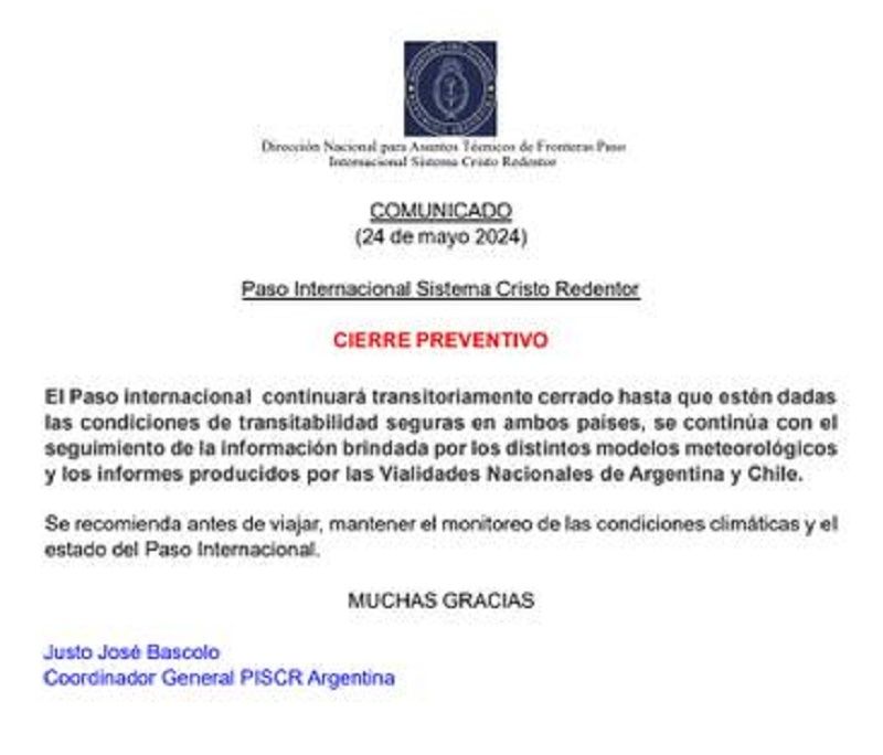 Desde el domingo a la noche, el Paso Internacional Cristo Redentor, se encuentra cerrado y sin actividad. Desde ese momento se activó el protocolo por cierre prolongado de la ruta hacia Chile y los camiones se están juntando en los puntos de contención para tener prioridad una vez que la frontera se vuelva a abrir.