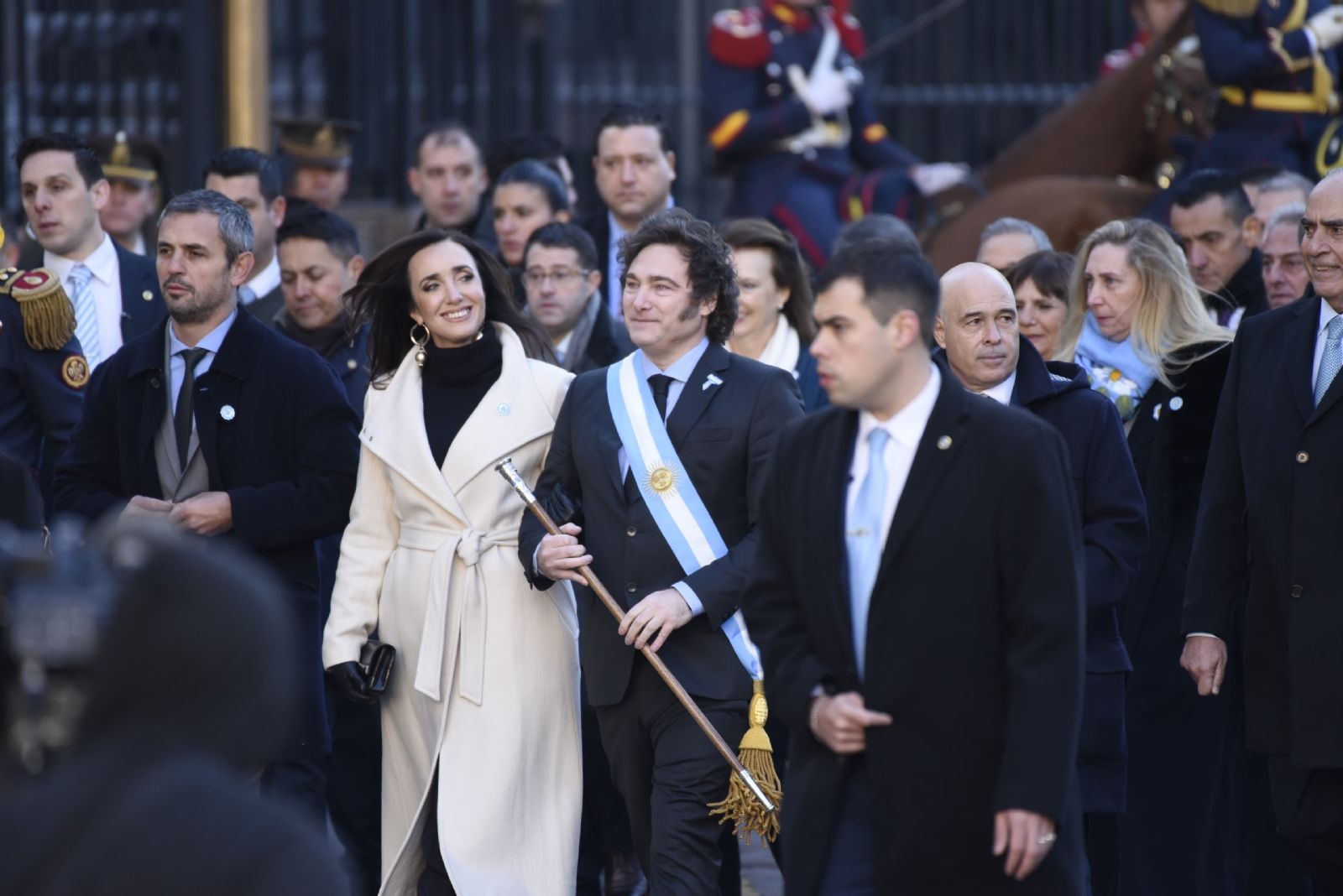 Cerca de las 9.30, Milei realizó la tradicional caminata hacia la Catedral acompañado por la vicepresidenta Victoria Villarruel y sus ministros para participar del Tedeum por el 25 de Mayo.
