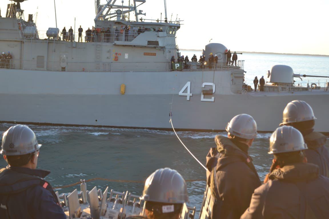 Además, según informó la Armada en su cuenta de X, durante la jornada de hoy se realizaron maniobras y comunicaciones tácticas en inglés, pasaje al habla con guía de distancia, y un encuentro táctico de superficie con las Patrulleros Oceánicos “Storni”, “Contraalmirante Cordero” y “Piedrabuena”.
