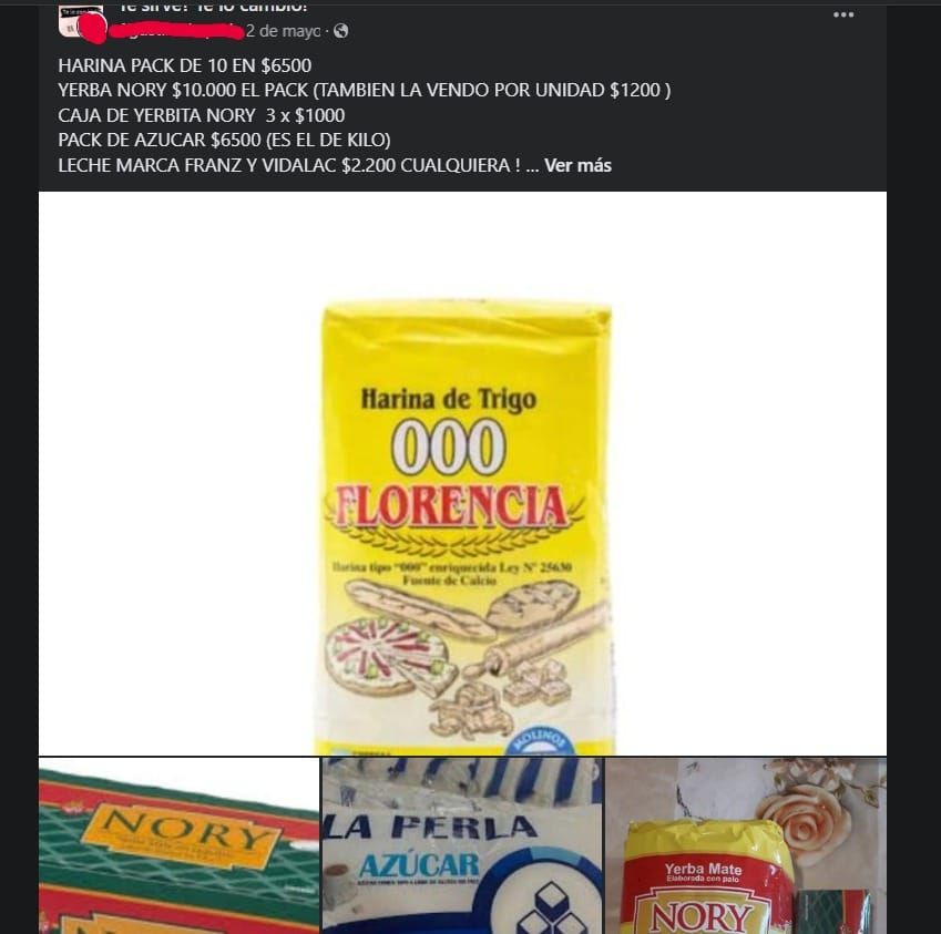 La charla fluye y el supuesto comprador se sincera: "Quiero comprar varias, pero quisiera saber la fecha de vencimiento. ¿Me pasas una foto de eso?". Entre ese mensaje y la respuesta pasaron exactamente 15 minutos, por lo que el interesado ya casi que había dado por perdida la charla. "Si, ahora te envío. Bancame un momento que estoy comprando. Llego a casa y te mando foto", escribió la mujer, la cual no solo ofrece leche en sus publicaciones, sino que además ofrece productos como azúcar, yerba, mate cocido entre otros alimentos no perecederos.