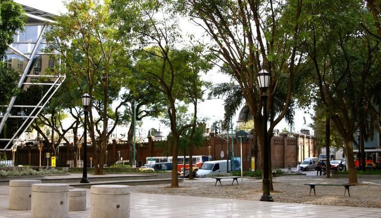 Pero en esto de no hacer diferencias, y como para que reine la paz entre ellas, los encargados del espacio público la han remozado más de una vez. Y a juicio de verdad, parece haber llegado ahora a una equilibrada madurez. La estética y la funcionalidad se complementan. Canteros de un verde profundo cobran relieve en el morado que los completa. Más allá, las palmeras se señorean en su exótica presencia. Lejos quedó aquella pirámide egipcia que presidía el lugar. Dicen algunos que ella misma escogió el destierro, y que fue de madrugada, cuando el aire húmedo de la ciudad se hace humo; y así las siluetas pierden forma, se confunden y finalmente, desaparecen.