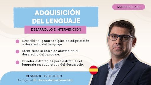 El próximo 15 de junio el Dr. Llorenç Andreu Barrachina estará dando una MasterClass sobre el desarrollo típico de la adquisición del lenguaje, en la que veremos el proceso típico de adquisición y desarrollo del lenguaje, las señales de alarma en el desarrollo del lenguaje, y las estrategias para estimular el lenguaje en cada etapa del desarrollo.