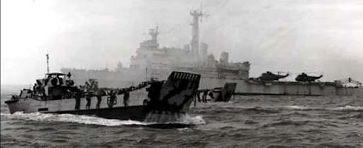 - La bahía de San Carlos y sus brazos sur y norte continuaban recibiendo los convoyes con pertrechos y armamento. Al mismo tiempo los Guardias Escoceses embarcaban en el HMS Intrepid, un buque desarrollado para operaciones anfibias, capaz de cargar 560 hombres con sus equipos y una vez en zona, liberar sus 4 lanchones de desembarco (LCU) para dejarlos en la costa. Su destino sería Fitz Roy, al sur de Puerto Argentino, en donde emprenderían su marcha al norte por Bluff Cove y concentrarían las fuerzas que cubrirían las alturas al sur de la capital.