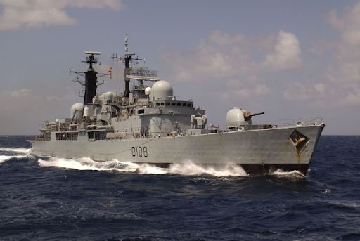 Se supo después que se trataba de la fragata HMS Plymouth y que una bomba impactó en una carga de profundidad haciéndola explotar, lo que causó daños y un incendio.