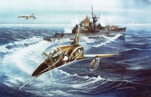 OF1289: Cuatro A4-B Skyhawk armados con tres bombas BR 250 y cañones cada uno, indicativo MASTIN. Integrantes: 1er Ten Alberto Filippini en el C-250, Ten Daniel Galvez en el C-214, Ten Vicente Autiero en el C-237 y Alférez Hugo Gómez en el C-230