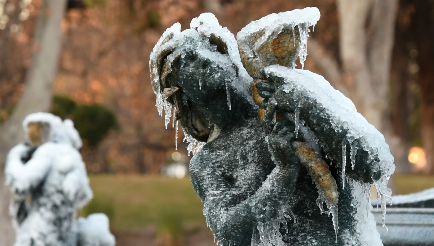 Frío polar en Mendoza: se congeló una emblemática fuente del Parque