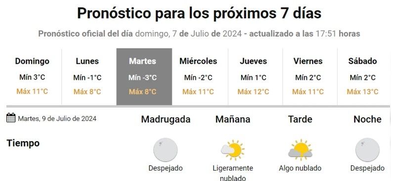 Para este lunes 8 de julio se anuncia una temperatura mínima de un grado bajo cero, pero no será el día más frío del año, al menos por lo que anuncian los pronosticadores del tiempo.