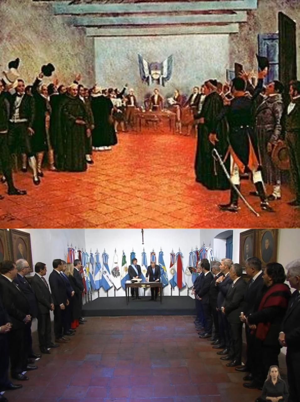 208 años después, 19 gobernadores, el presidente de la Nación y la secretaria general de la Presidencia, Karina Milei, volvieron a ocupar esa sala -la única que se conserva de aquella original construcción colonial- y sobre la misma mesa en la que lo hicieron Francisco Narciso de Laprida, Juan José Paso y Mariano Boedo, firmaron el Pacto de Mayo. La historia dirá si esta reedición tendrá un impacto tan trascendente.