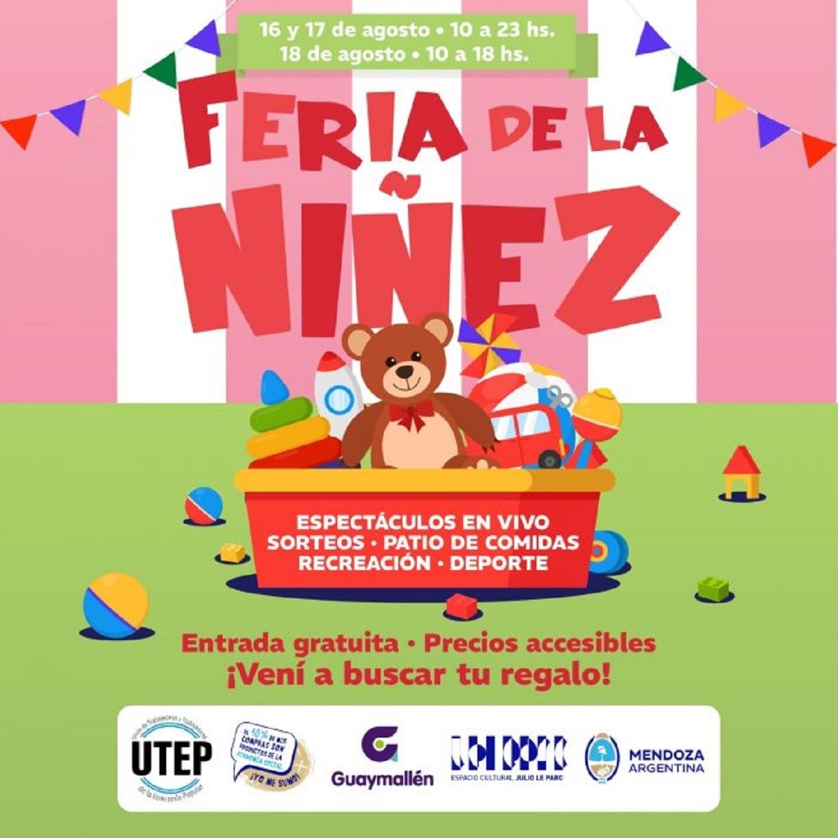 Durante la mañana de este miércoles se presentó el cronograma de la Feria de la Niñez que dará inicio este viernes 16 de agosto y tendrá actividades hasta el domingo 18. Entre otras actividades, el evento contará con espectáculos en vivo, sorteos, patio de comidas y deporte. La entrada será libre y gratuita en el espacio cultural Julio Le Parc, de las calles Mitre y Godoy Cruz, de Guaymallén.