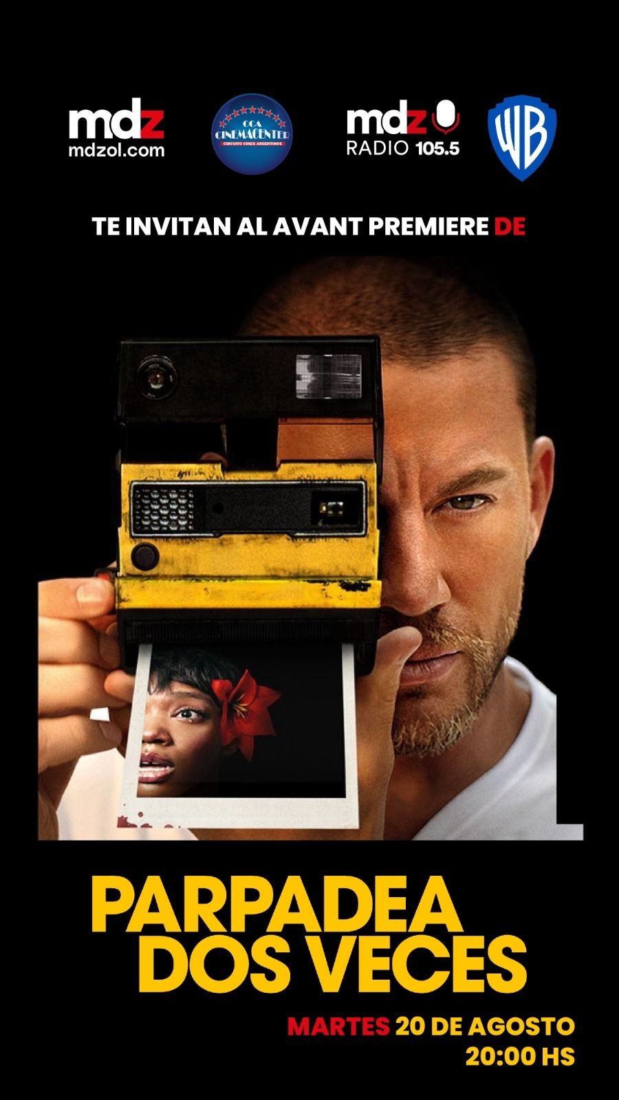 ¿Vamos al cine? El próximo martes 20 a las 20 hs MDZradio y MDZol te invitan a participar de la Avant Premiere de la película Parpadea 2 Veces, en CinemaCenter, de la Barraca mall. ¿Cómo ser parte de esta presentación exclusiva? ¡Muy sencillo! Dejanos tus datos acá y si sos uno de los cientos de asistentes, te avisamos el lunes para que te prepares.