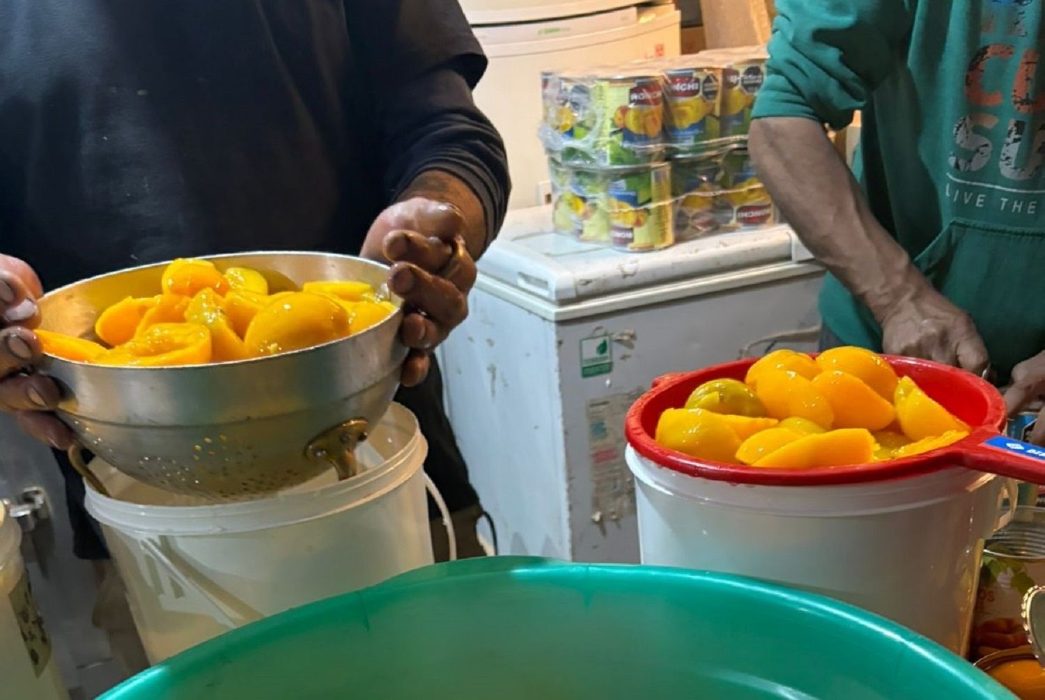 “Nosotros llevamos ciento cuarenta horas trabajadas acá, horneando los piononos, haciendo los postres, las cremas”, dijo la mujer. Es decir, hace prácticamente seis días que vienen haciendo todo para lograr terminar la torta para el Día de la Niñez.