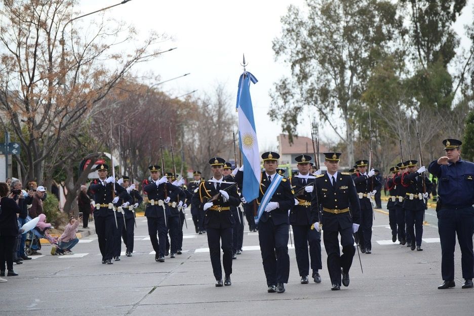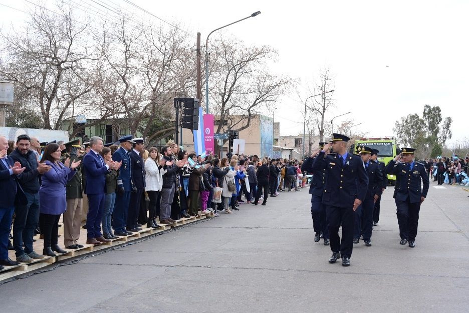 Del acto tomaron parte escuelas primarias, secundarias, CEJBA y CENS. También jardines maternales y las instituciones de la zona. Como todos los años, la escuela cabecera Dr Enrique Luis Day fue la anfitriona y cabeza de desfile.