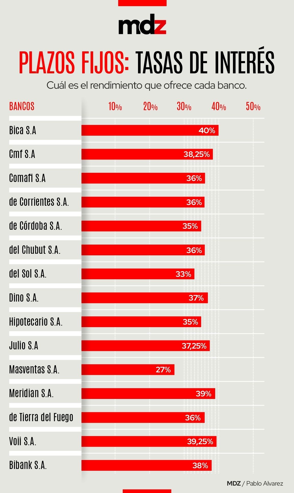No obstante y, pese a que no llegan al mismo porcentaje, otros bancos declararon tasas que se acercan mucho a la de Bica.