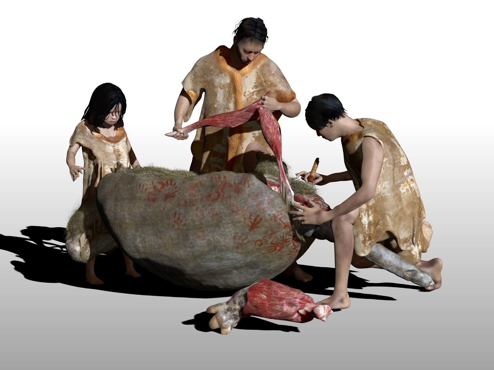 Los huesos corresponden a partes de cintura pélvica, vértebras caudales y tubo caudal del animal, las cuales se encontraban dispuestas en su posición original, y presentan una llamativa singularidad: marcas de corte que no parecían haber sido causadas por animales carnívoros o roedores. Según se determinó luego, las mismas seguían patrones de corte bien establecidos, como los observados típicamente en los huesos de animales consumidos por cazadores en la antigüedad.
