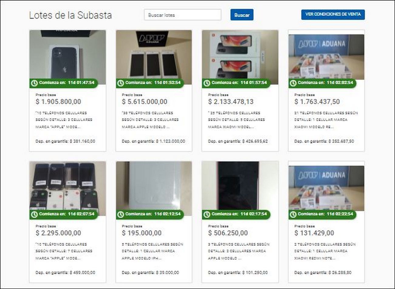 La Administración Federal de Ingresos Públicos (AFIP) llevará a cabo una subasta online de lotes de teléfonos celulares con montos que parten de los 130 mil pesos.
