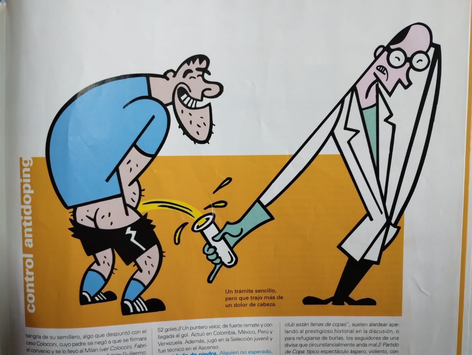 Aún hoy tengo, casi en penitencia, en un rincón de la biblioteca, el tomo que en la página 53, con un desagradable dibujo (que pretendía ser caricaturesco), grafica el concepto de control antidoping en los partidos de fútbol.
