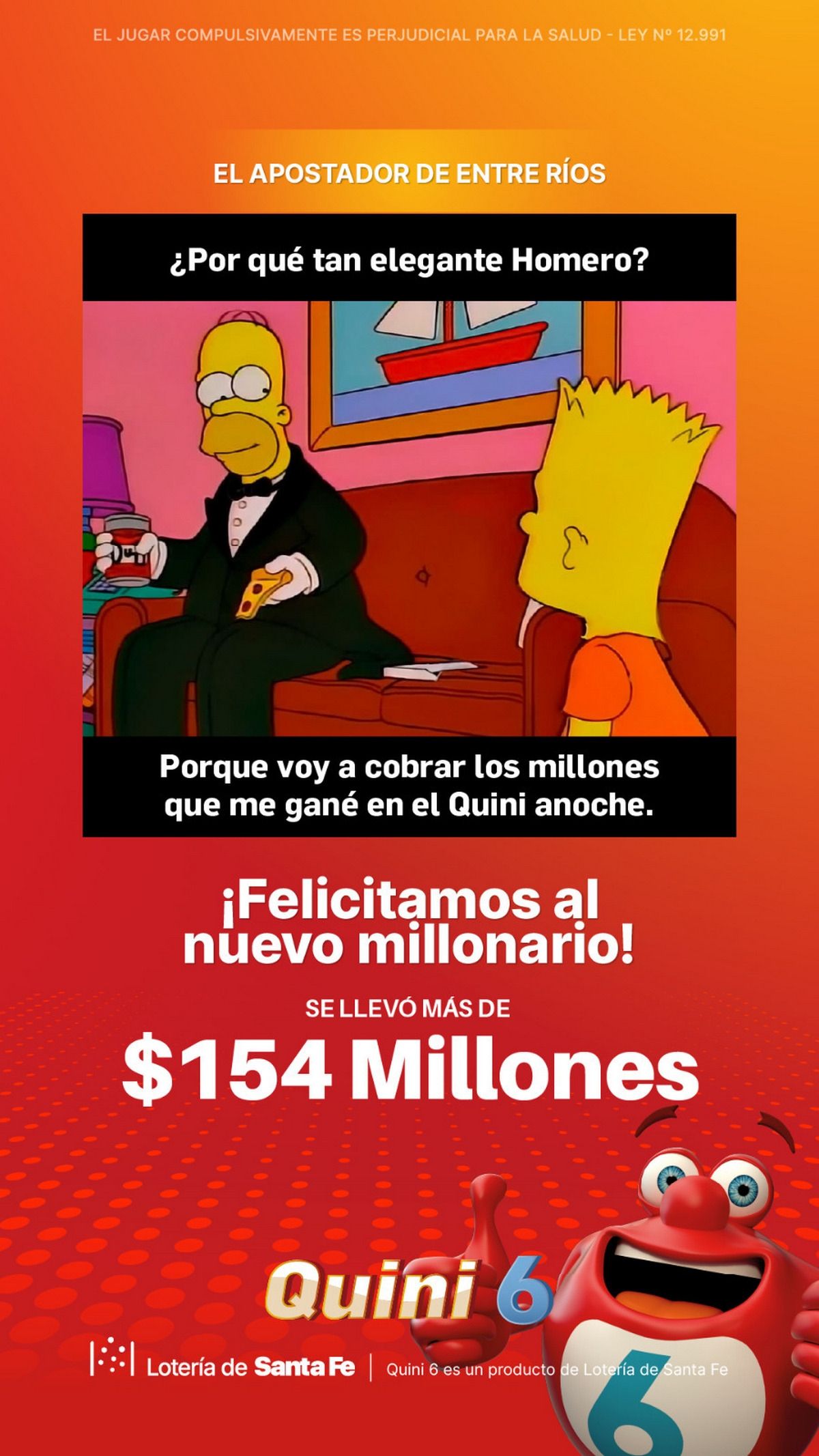 El pasado domingo 25 de agosto, el sorteo del Quini 6 dejó a un nuevo millonario en Argentina. Un apostador de la localidad de Cerrito, en la provincia de Entre Ríos, se llevó el gran premio de más de $154 millones en la modalidad "Sale Siempre".