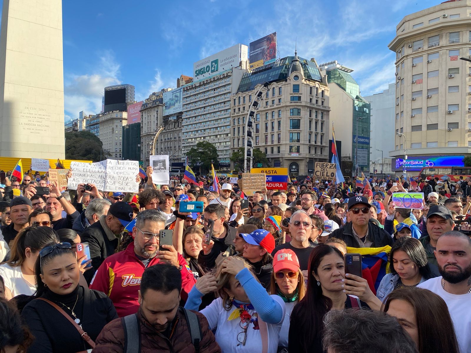 Masiva convocatoria de venezolanos al Obelisco en rechazo al régimen de Nicolás Maduro
