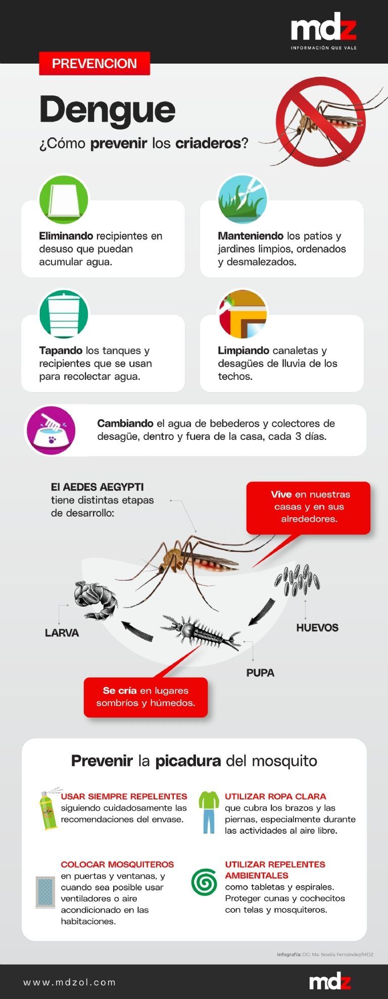 - Tapar los recipientes con agua, eliminar la basura acumulada en patios y áreas al aire libre.