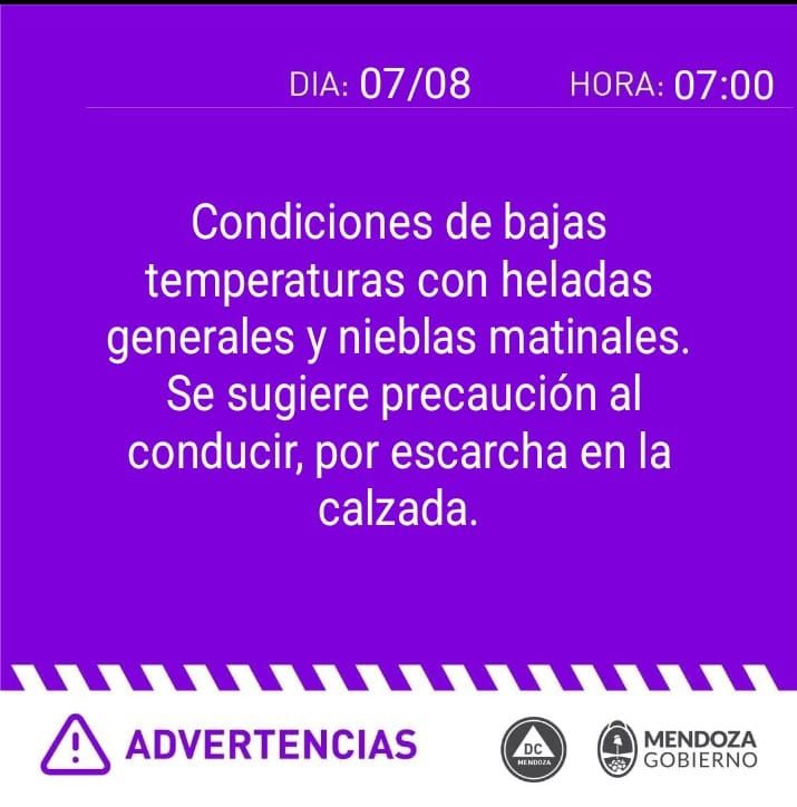 - Zona Este, integrada por Junín, Rivadavia, San Martín, Santa Rosa y La Paz: máxima de 9° y mínima de -1°.