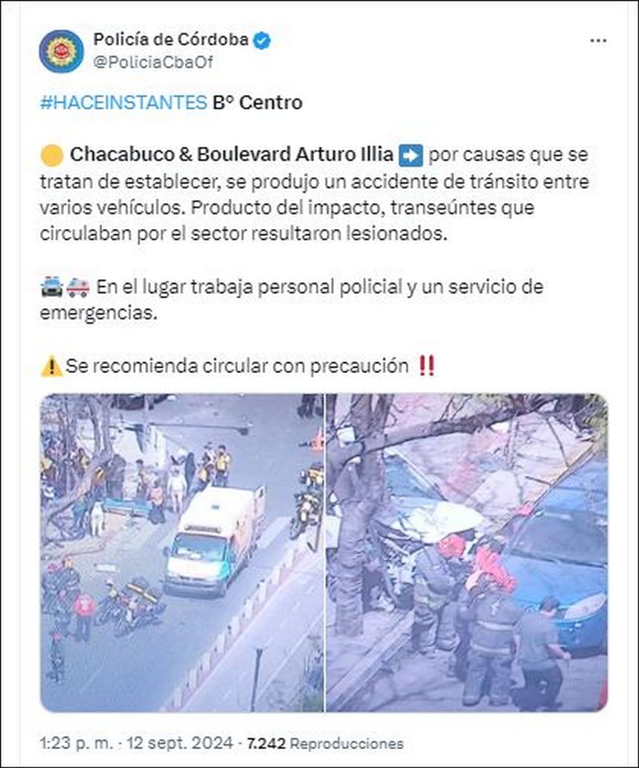 El ministro de seguridad de la Provincia, Juan Pablo Quinteros, confirmó que son 13 al menos las personas que fueron trasladadas a distintos centros de salud por el choque múltiple que ocurrió pasadas las 13.00 en Chacabuco y San Jerónimo, pleno centro de la ciudad de Córdoba.