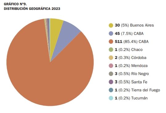 En cuanto a las ciudades del país donde se registraron más denuncias, la Ciudad Autónoma de Buenos Aires (CABA) se constituyó como el distrito con más hechos denunciados. No obstante, en el documento aclaran que esto "no necesariamente debe inferirse que es la localidad con mayores índices de juedeofobia, sino que es probable que este dato coincida con una mayor inclinación a la realización de denuncias por parte de sus residentes".