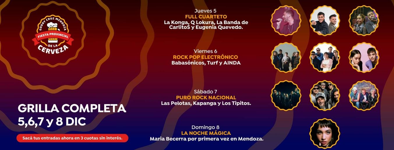 La Municipalidad de Godoy Cruz confirmó esta mañana la grilla de artistas que formarán parte de la nueva edición de la Fiesta de la Cerveza. Si bien oficialmente no confirmaron la sede del evento, todo indica que se realizará en el Hipódromo de Mendoza tal como anticipó MDZ semanas atrás.