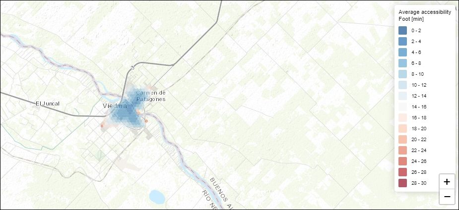 La ciudad mejor puntuada es Viedma, donde se necesita solo 8 minutos caminando y 4 en bicicleta, destacándose como un ejemplo a seguir dentro del territorio argentino.