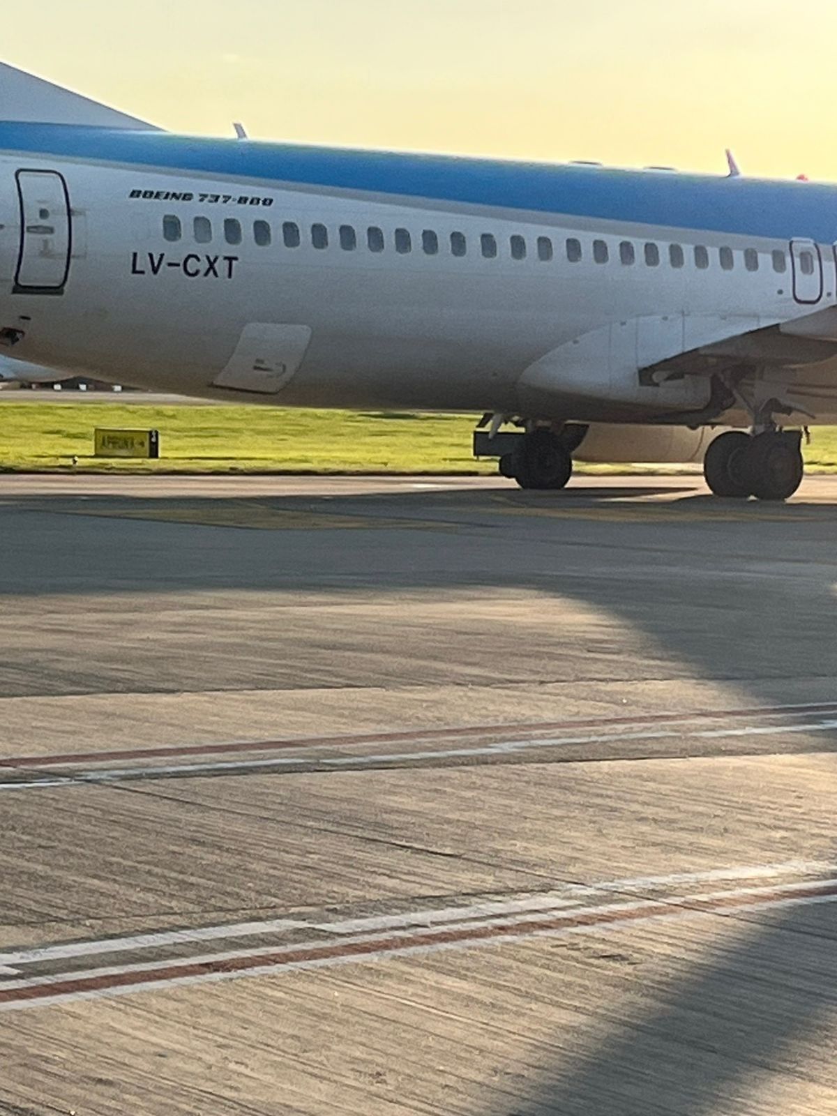 Según informaron fuentes de la compañía, "el avión matrícula LV CXT proveniente de la ciudad de Ushuaia, una vez aterrizado en Aeroparque y cuando estaba circulando en calle de rodaje a baja velocidad, sufrió un desprendimiento de neumático".