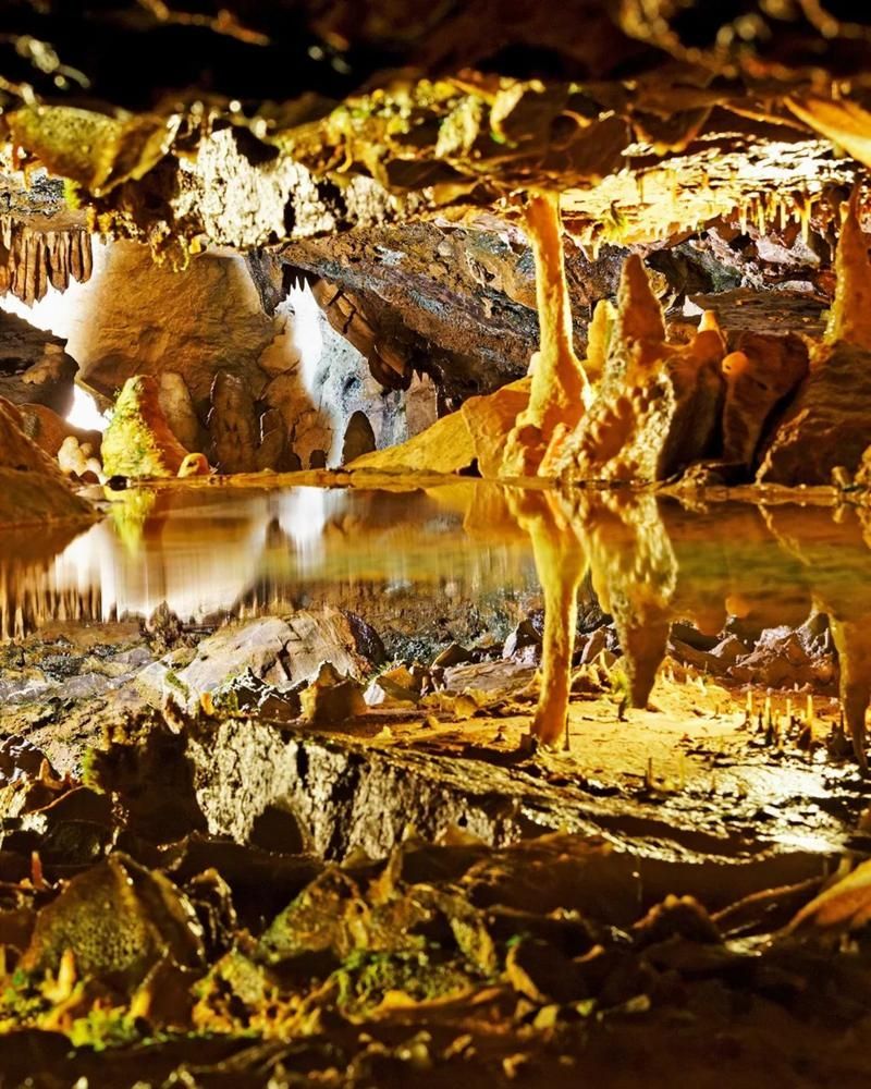 Si visitas la cueva de Gough, la más famosa de las cuevas de Cheddar, probablemente reconocerás elementos de la descripción de Tolkien de las Cuevas Resplandecientes: "columnas de color blanco, azafrán y rosa del amanecer... estriadas y retorcidas en formas oníricas".