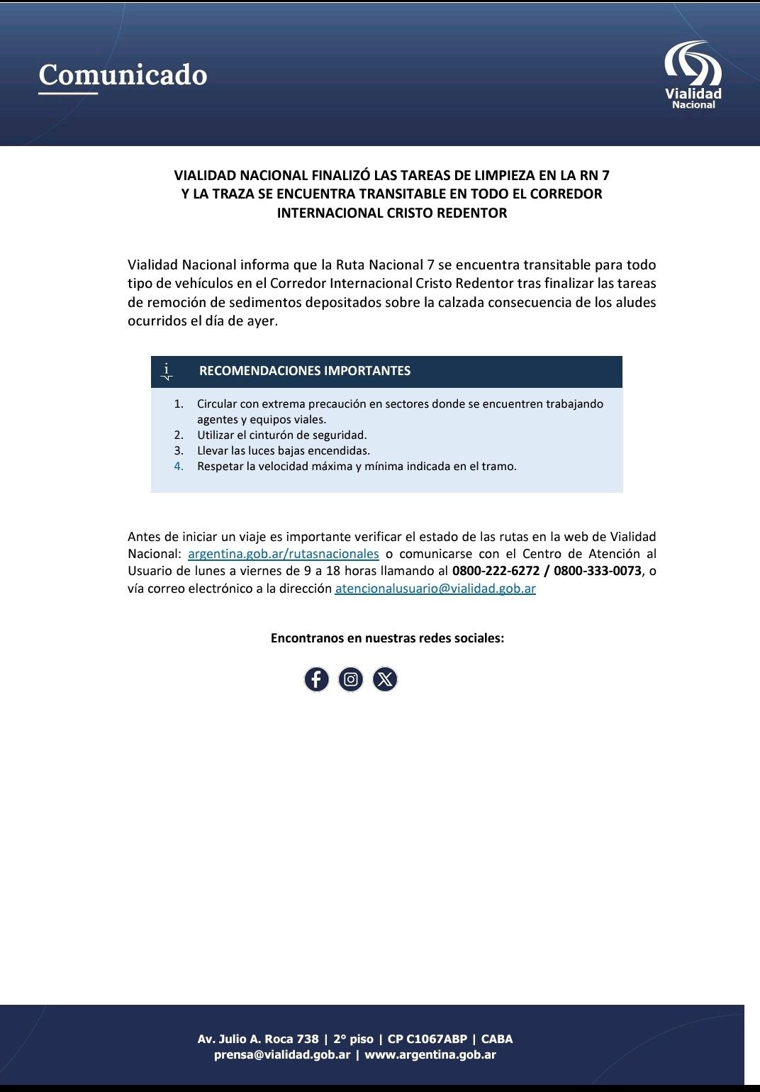 12. Se habilita el parador en Uspallata para evitar la congestión en alta montaña.