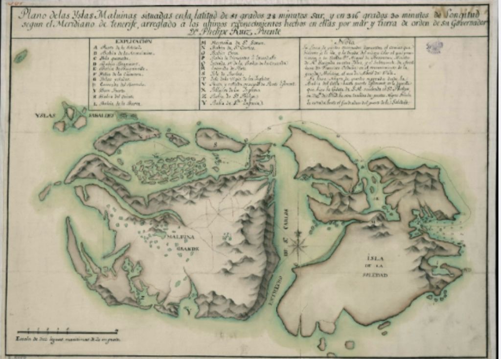 No es el primer asentamiento europeo en las islas, sino una construcción británica de 1845, esto es doce años posterior a la invasión de un territorio que pertenecía a España. Ochenta años antes, en 1764, el marino francés Louise Antoine de Bougainville financiado por la compañía de Saint- Malo, había instalado un poco más al noroeste de la misma bahía el primer puerto. Desde el punto de vista histórico-artístico interesante recordarlo.