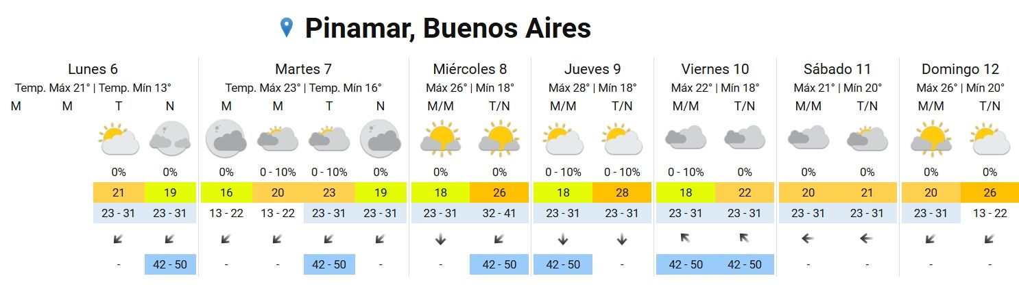 A comparación de Mar del Plata, el SMN no indica que haya probabilidades de lluvia para Pinamar ni Villa Gesell en los próximos días. Por lo contrario, el sol brillará la mayoría de los días, mientras que el viernes y sábado estará nublado.