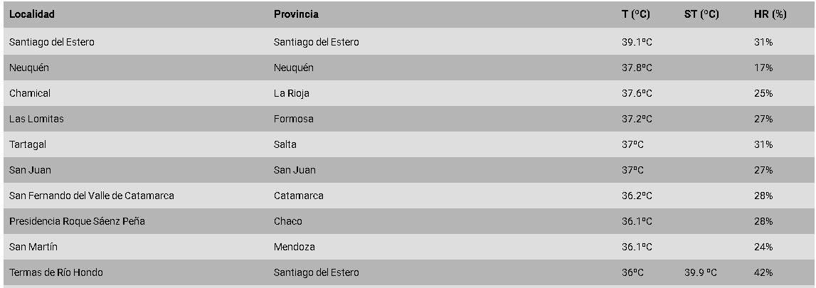 En el corte realizado a las 17 por el Servicio Meteorológico Nacional (SMN), una de las ciudades mendocinas ingresó al ránking que elabora el organismo de las localidades más calientes del país. Así, la estación meteorológica ubicada en San Martín, se ubicó en el puesto 8 con 36,1°, bastante por detrás de los 39,1° que se padecían en la ciudad de Santiago del Estero, lugar que ocupaba la cima de la tabla. Por su parte, en el Gran Mendoza el termómetro marcaba casi 34°.