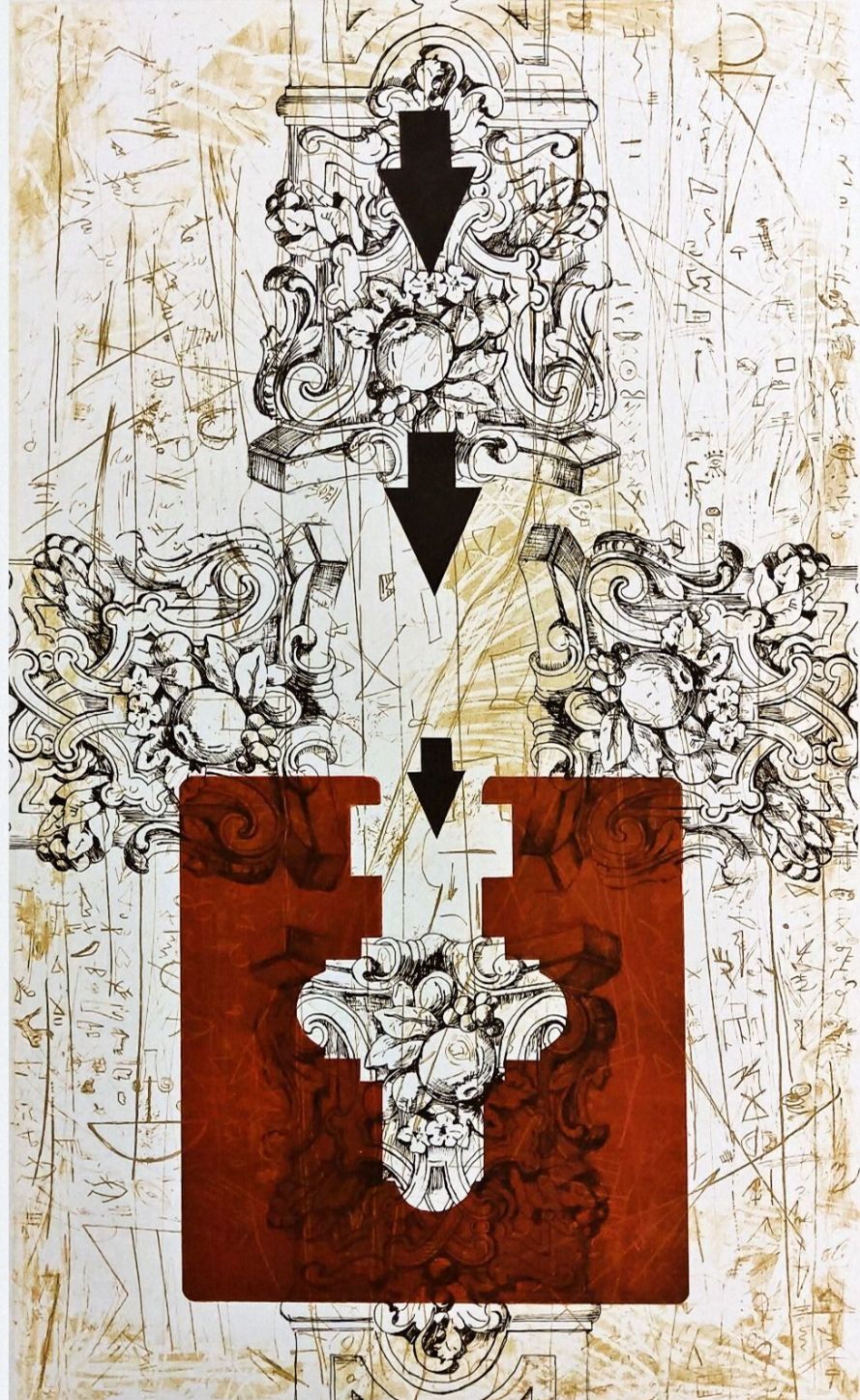 El arte y la arquitectura han compartido en la historia significado y significante: la integración de las artes; el simbolismo y significado; el uso de elementos artísticos y la colaboración entre artistas y arquitectos son ejemplos de esta afirmación, siendo una impronta indeleble en el hábitat y la vida humana. Esto impacta en parte de la obra de Alicia Díaz Rinaldi quien en la década del noventa, en una primera muestra sobre el tema: “La mirada de la memoria” en la Fundación Banco Patricios, reproduce en aguafuerte y collagraph capiteles y molduras clásicas de la arquitectura griega y romana. El placer por el clasicismo arquitectónico está ligado también a su constante cavilación sobre la tensión entre el orden y el caos, componentes del equilibrio inestable de la existencia. Ella toma fragmentos y da una relectura en clave artística de los mismos, los enriquece y reanima.