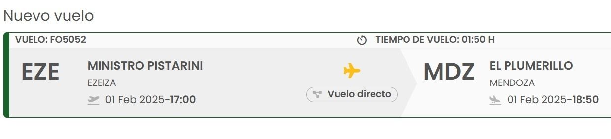 Sacó el pasaje en FlyBondi para viajar el mismo sábado al mediodía: a las 12.30, para llegar al Aeropuerto de Mendoza una hora y 50 minutos después. Cabe destacar que el recital empieza a las 21.