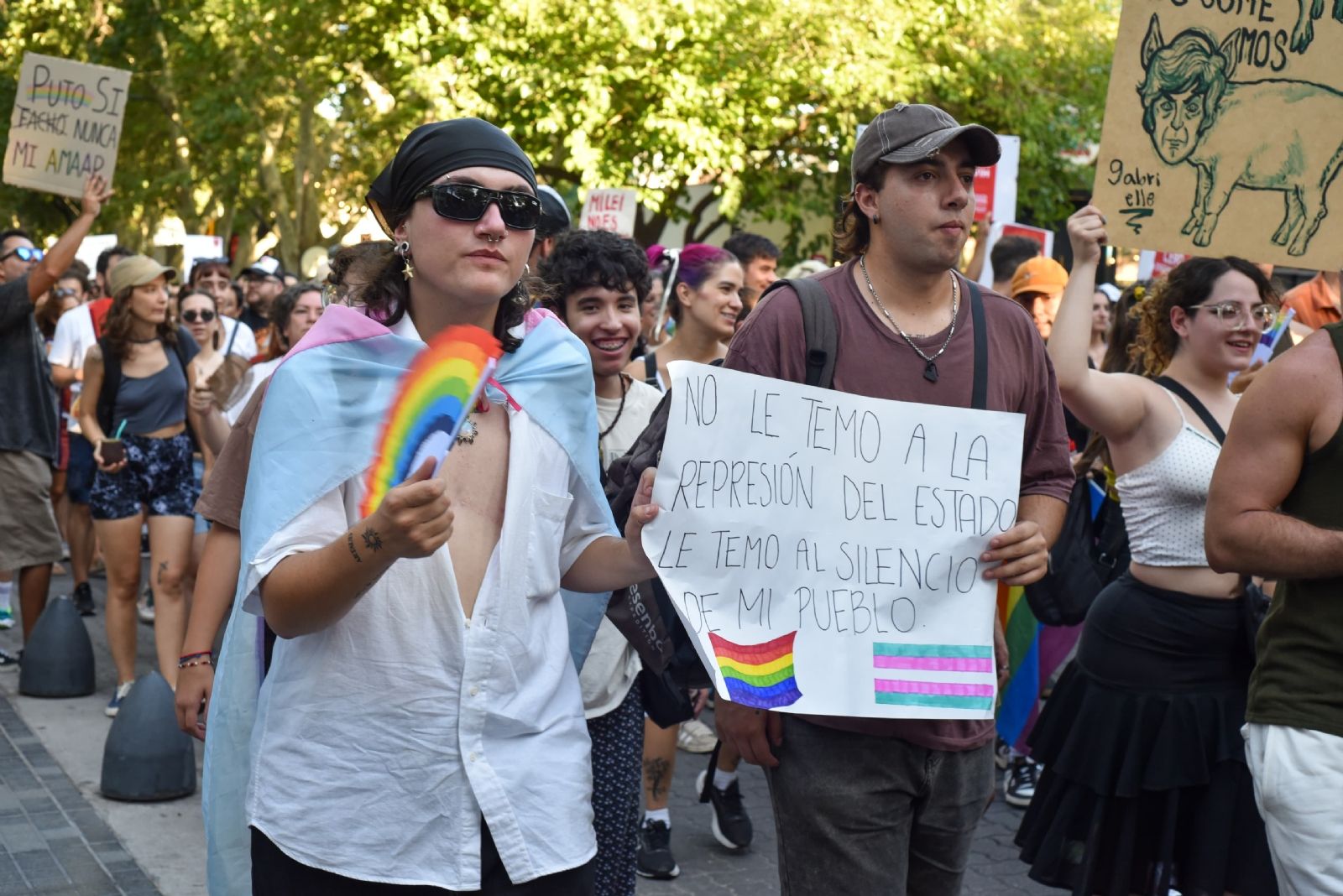 Una de las participantes, Mia Pilar Brissio, explicó los motivos de la marcha. "Nos convocamos como en todo el país contra los dichos del actual líder de nuestro país, porque no le podemos decir presidente a una persona que no tiene los ideales de todos, todas y todes. Tenemos la emoción de decir que apoyamos nos solo a la comunidad LGTBIQ+ sino también a los jubilados, a los universitarios, a toda la gente que se está muriendo de hambre, a los que no llegan a fin de mes, a los que le quitaron sus pensiones, a los discapacitados que le quitaron también las pensiones. Estamos acá en representación e todas las familias mendocinas".