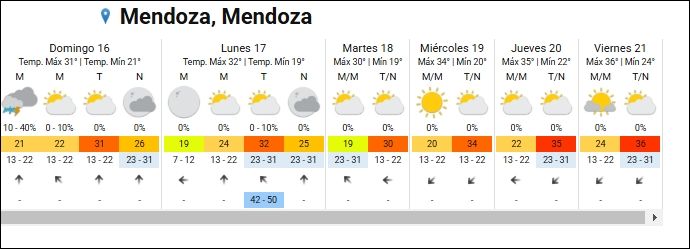 El domingo en Mendoza estará mayormente nublado, con temperaturas sin grandes variaciones. La máxima alcanzará los 31°C, mientras que la mínima se ubicará en los 21°C, según el pronóstico del Servicio Meteorológico Nacional.