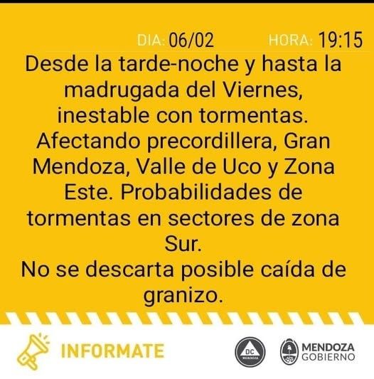 Según se anuncia, se esperan tormentas que afectarían la precordillera, el Gran Mendoza, Valle de Uco y zona Este.