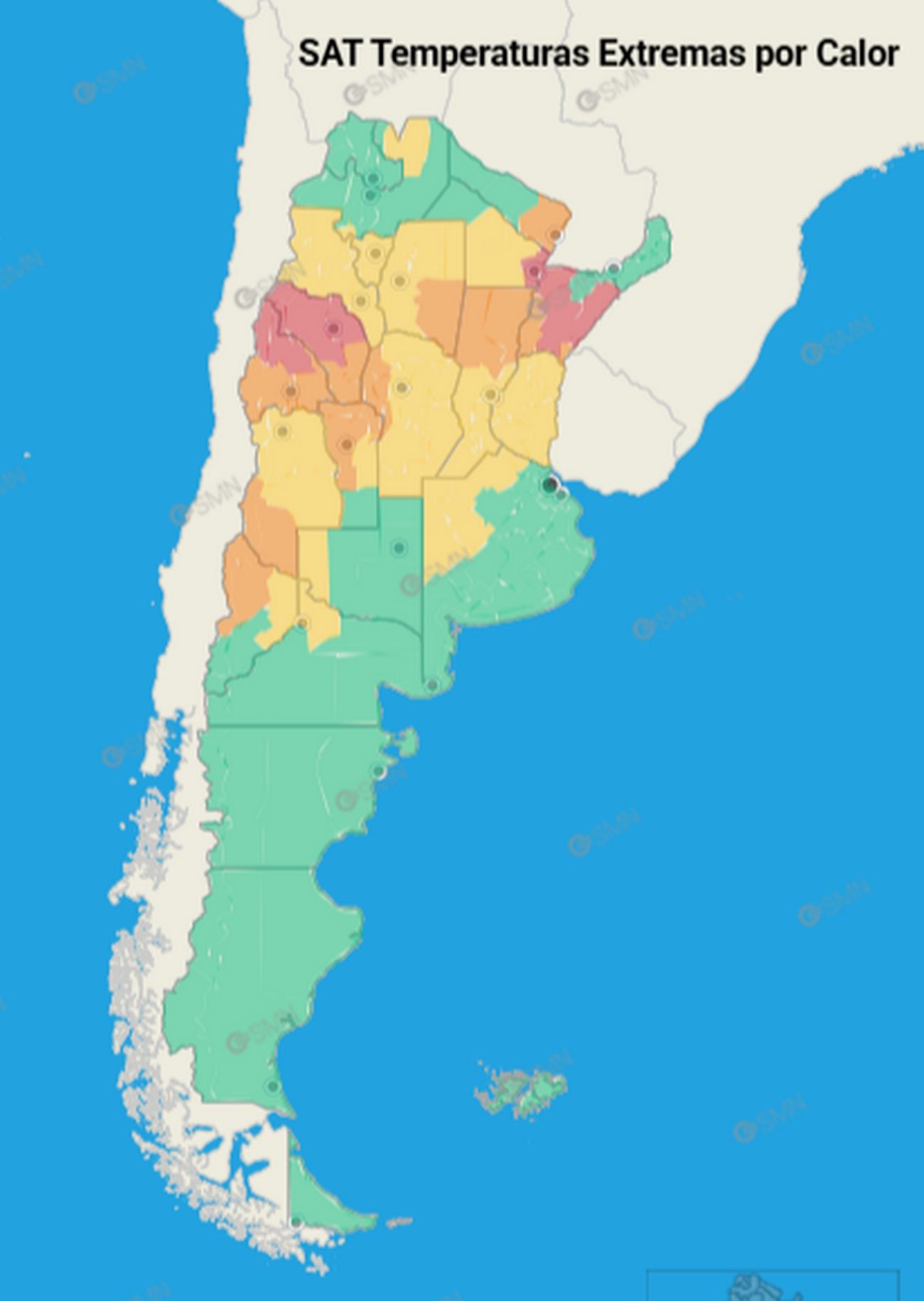 En este contexto, el organismo declaró una alerta roja para amplias zonas de La Rioja, el norte de San Juan, el este de Formosa y gran parte de Corrientes.