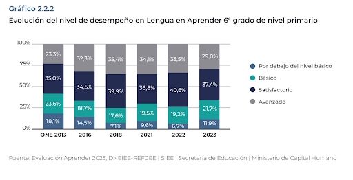 Los resultados del operativo muestran que comparativamente al año 2022 fueron más los estudiantes que se encontraron por debajo del nivel básico (11,9% en 2023, frente a 6,7% de 2022). Estar por debajo del nivel básico en sexto grado implica que si bien saben leer, no logran manejar un texto con la habilidad suficiente como para identificar aspectos globales como: personajes principales, hacer resúmenes adecuados, reconocer las ideas principales, reconocer información ligeramente parafraseada, entre otros criterios.