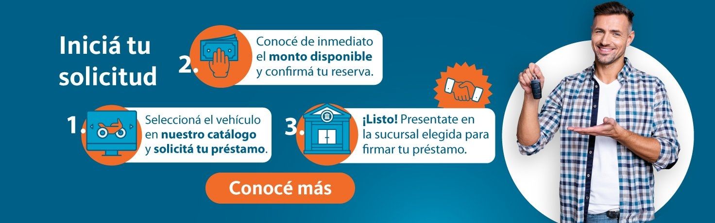 La operatoria es sencilla: luego de seleccionar el vehículo y confirmar el préstamo, el cliente debe presentarse en la sucursal bancaria que haya elegido previamente. Luego, se coordina la entrega del vehículo con el concesionario.