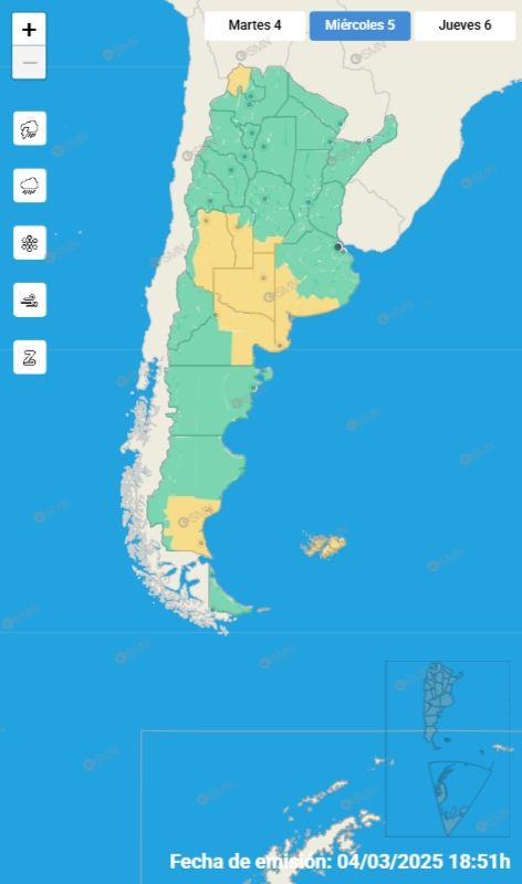 Debido a la magnitud del fenómeno, el Servicio Meteorológico Nacional(SMN) emitió una alerta amarilla. Según el organismo, "el área será afectada por tormentas, algunas localmente fuertes, acompañadas por intensas ráfagas de viento, actividad eléctrica significativa, ocasional caída de granizo y abundante precipitación en cortos períodos". Se estima que los acumulados de lluvia oscilarán entre 30 y 40 mm, con la posibilidad de superar estos valores en algunas zonas.