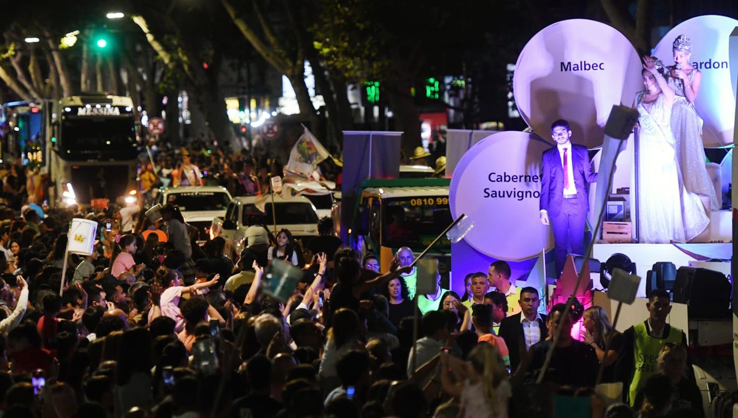 La Vía Blanca marca el inicio del fin de semana de las festividades vendimiales y convoca a miles de mendocinos y turistas que se reúnen en las calles para disfrutar del desfile de carros alegóricos, reinas y artistas.